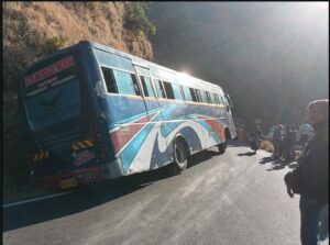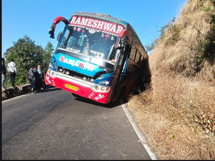 प्रतापगड (Pratapgad) दर्शनानंतर महाबळेश्वरकडे (Mahabaleshwar) जात असताना चालकाला तीव्र वळणाचा अंदाज न आल्याने बस रस्त्याकडेला सरकली.