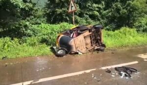 खेड – रत्नागिरी मुंबई गोवा महामार्गावर कळंबणी गावानजीक दुचाकी, रिक्षा आणि मारुती स्विफ्ट कार या तीन वाहनांचा विचित्र अपघात झाला. या अपघातात रिक्षा पलटी झाली असून रिक्षा चालक गंभीर जखमी झाला आहे, तर अन्य दोघेजण किरकोळ जखमी झाले असल्याची माहिती मिळाली आहे .