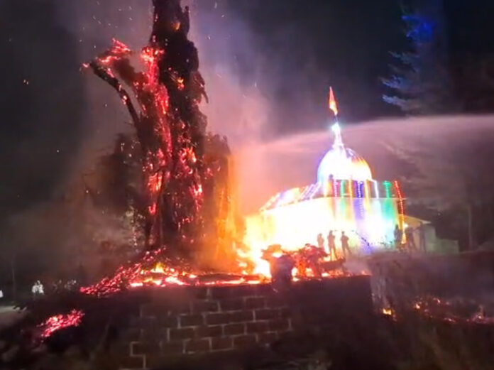 एका बाजूला सगळीकडे हनुमान जयंती मोठ्या उत्साहात साजरी होत असताना खेड तालुक्यातील कुळवंडी येथे हनुमान मंदिरासमोर असणाऱ्या भल्या मोठ्या वडाच्या झाडाला मध्यरात्री अचानक आग लागली. ही आग इतकी प्रचंड होती की आजूबाजूला असणाऱ्या घरांना देखील त्याची धग जाणवू लागली ग्रामस्थ्यांनी खेड नगर पालिकेच्या अग्निशमक दलाला पाचरण केले त्यानंतर तब्बल दोन ते अडीच तासानंतर अग्निशमक दलाच्या जवानांनी हनुमान मंदिरासमोर जळत असलेल्या वडाच्या झाडाची आग विझवली.